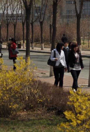 徜徉在吉大的校园中,风携着土香扑面而来。苍松退去了苍老的冬袄,披上了崭新的绿衣,每一个枝蔓的顶端,那些长长的不那么水润的松枝都拖着一小撮嫩嫩的黄绿色的新枝,仿佛母亲的手呵护着刚刚降生的婴儿;婀娜的柳枝随风摆动,曼舞翩跹,风与柳正如水与柳一样,是这世间的绝配,尽显了柳那一动一静的不同的美;默默无闻的小草成群结队地安家在校园的各个角落,它们辉映着大树,衬托着花枝,仿佛自然的底色,晕染开来……